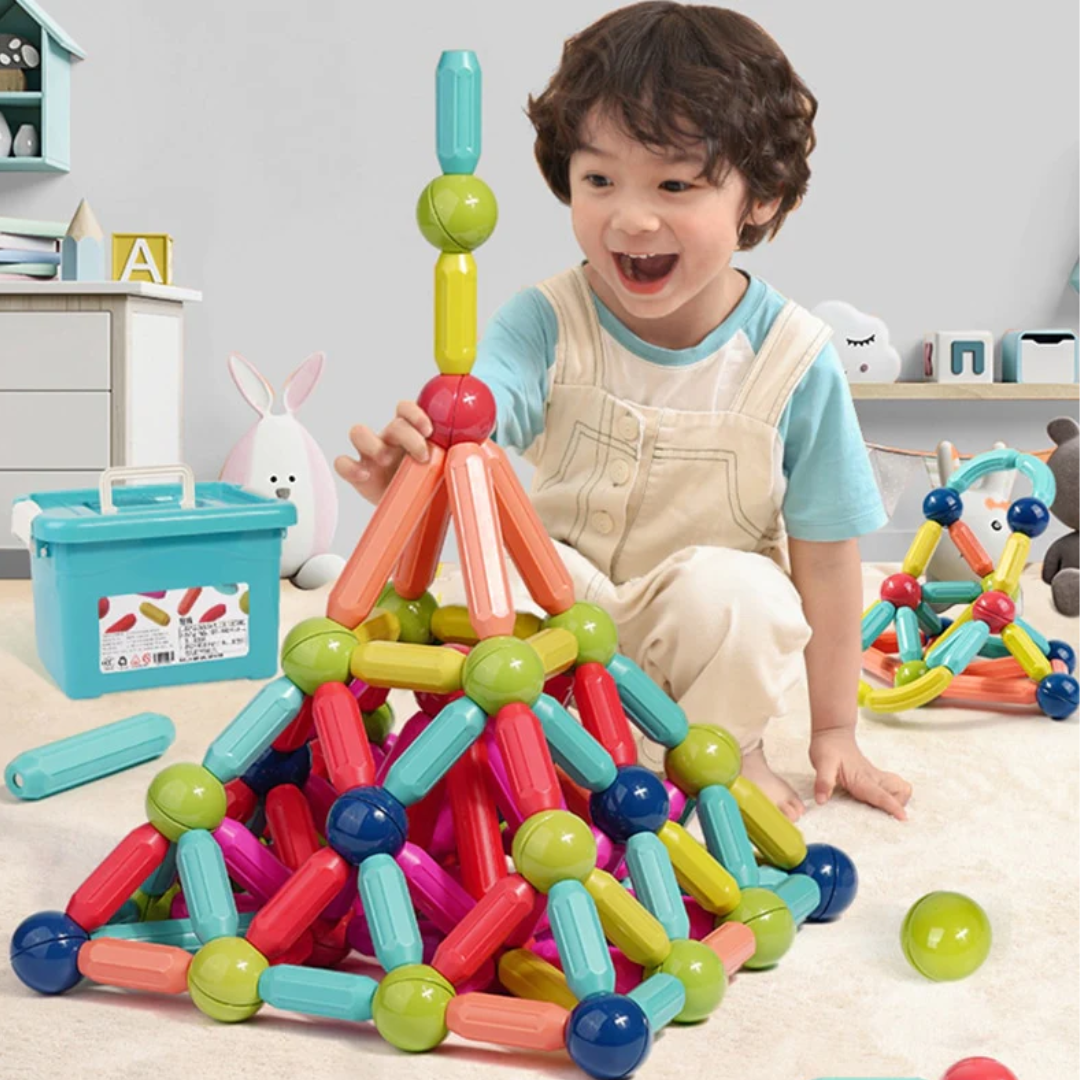Το σετ περιλαμβάνει συνολικά 36 μαγνητικά τουβλάκια σε διάφορα σχήματα και χρώματα, ώστε τα παιδιά να μπορούν να φτιάχνουν πολλές και διαφορετικές κατασκευές.
