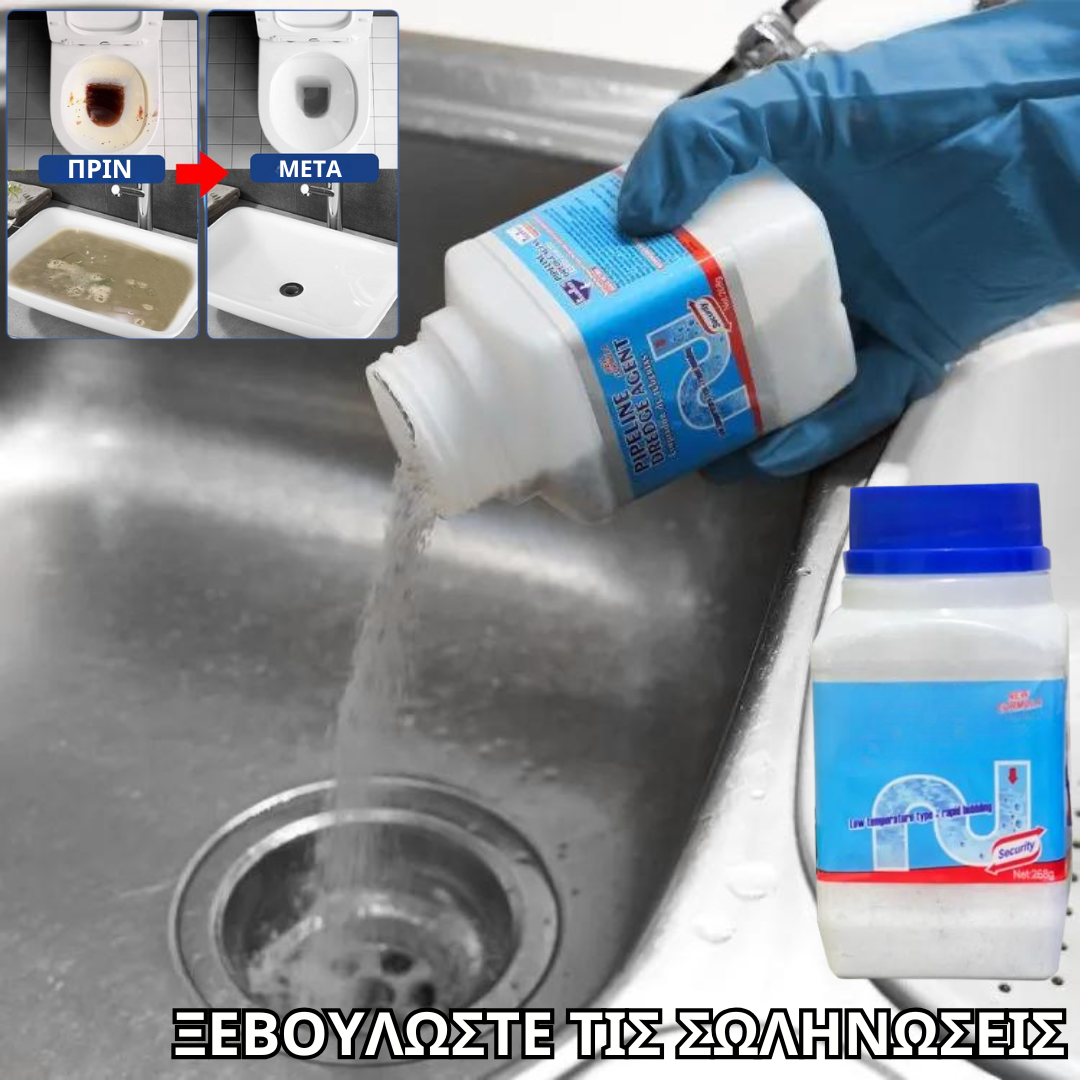 Παρακαλώ καλύψτε το στόμα και την μύτη σας μιας και το προϊόν αντιδρά με το ζεστό νερό και απομακρυνθείτε από το σημείο που το ρίξατε. Παρακαλώ διαβάστε τις επισημάνσεις στα πλάγια του μπουκαλιού.